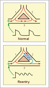 Наиболее частый – механизм: re-entry (риэнтри, механизм повторного